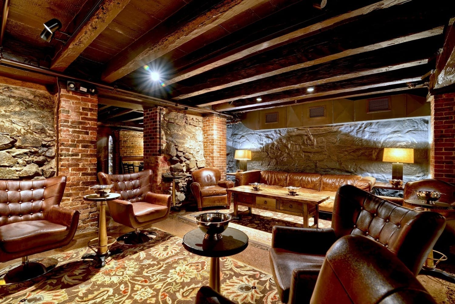 Built in the 1700’s, our modern speakeasy features massive hand hewn beams, a granite bar, plush leather seating with many booths for intimate conversation. Guests are also welcome to enjoy the gorgeous, tastefully appointed lounge separate from the main bar area – the perfect setting for gathering with friends.